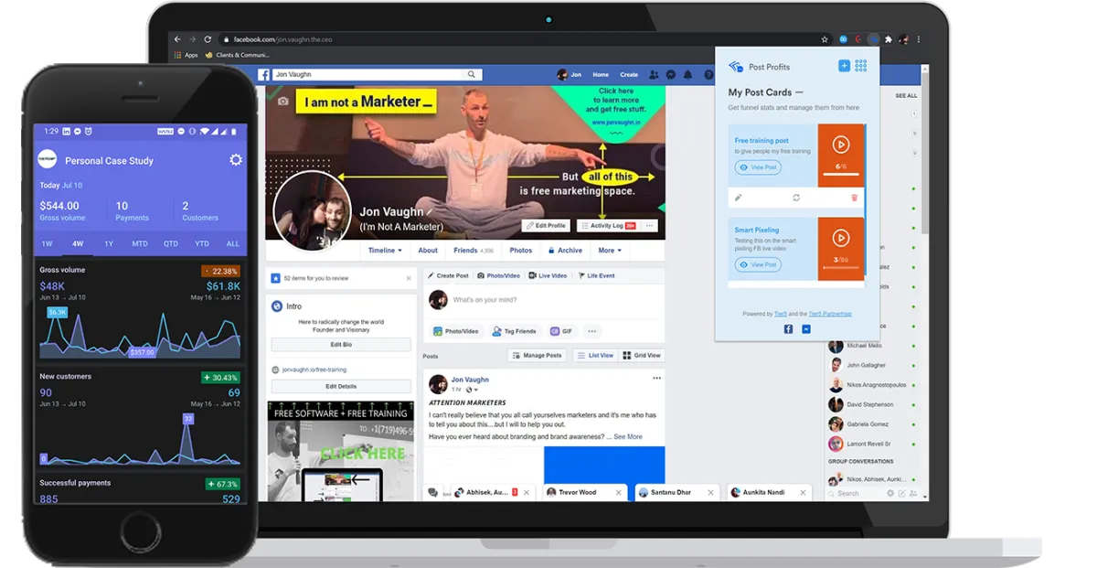 So like every problem I encounter in my business, I figured out a way to solve it with software. I built Post Profits to leverage all the things I had learned about marketing and selling things on Facebook, and built a software that would automate the simplest tasks that were taking the most amount of my time, so I could focus on other things, like my wife and monkeys.